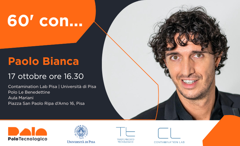 Il prossimo appuntamento sarà: “60’ con… Paolo Bianca” Venerdì 17 ottobre, ore 16:30 presso la sede Contamination Lab Pisa – Polo Le Benedettine, Aula Mariani (Piazza San Paolo Ripa d’Arno 16, Pisa).